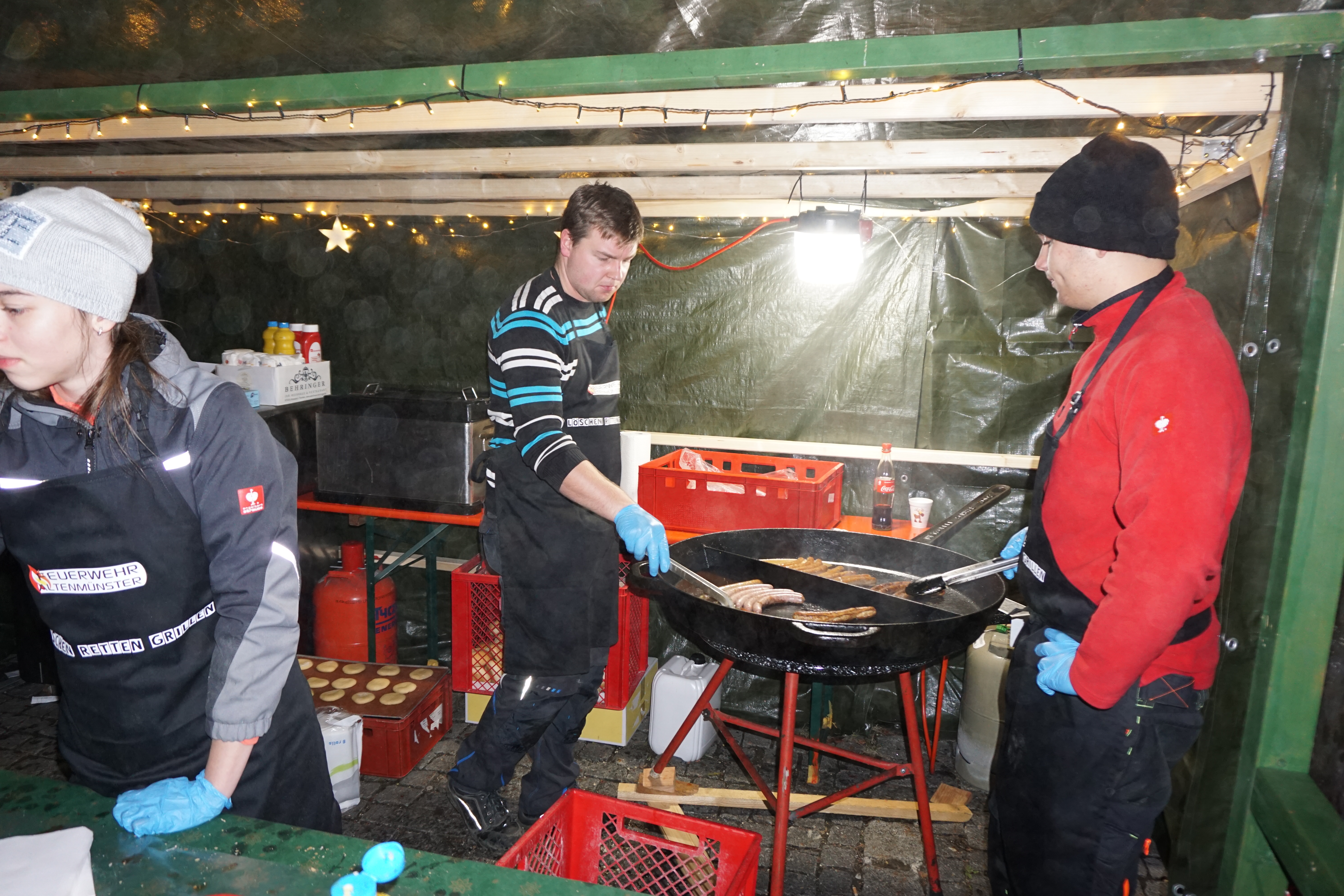 Unter dem Motto „Löschen – Retten – Grillen“ gab es auch dieses Jahr beim stimmungsvoll gestalteten Adventsmarkt in Altenmünster am Stand der Freiwilligen Feuerwehr allerhand leckeres zu Essen und Trinken. Neben Punsch und Glühwein wurden traditionell frische Kiachla geformt und in Öl heraus gebacken. Die deftigere Kost kam vom Grill – hier gab es leckere Bratwürste, scharfe Feuerwürste und saftigen Weihnachtsschinken auf frischen Semmeln.